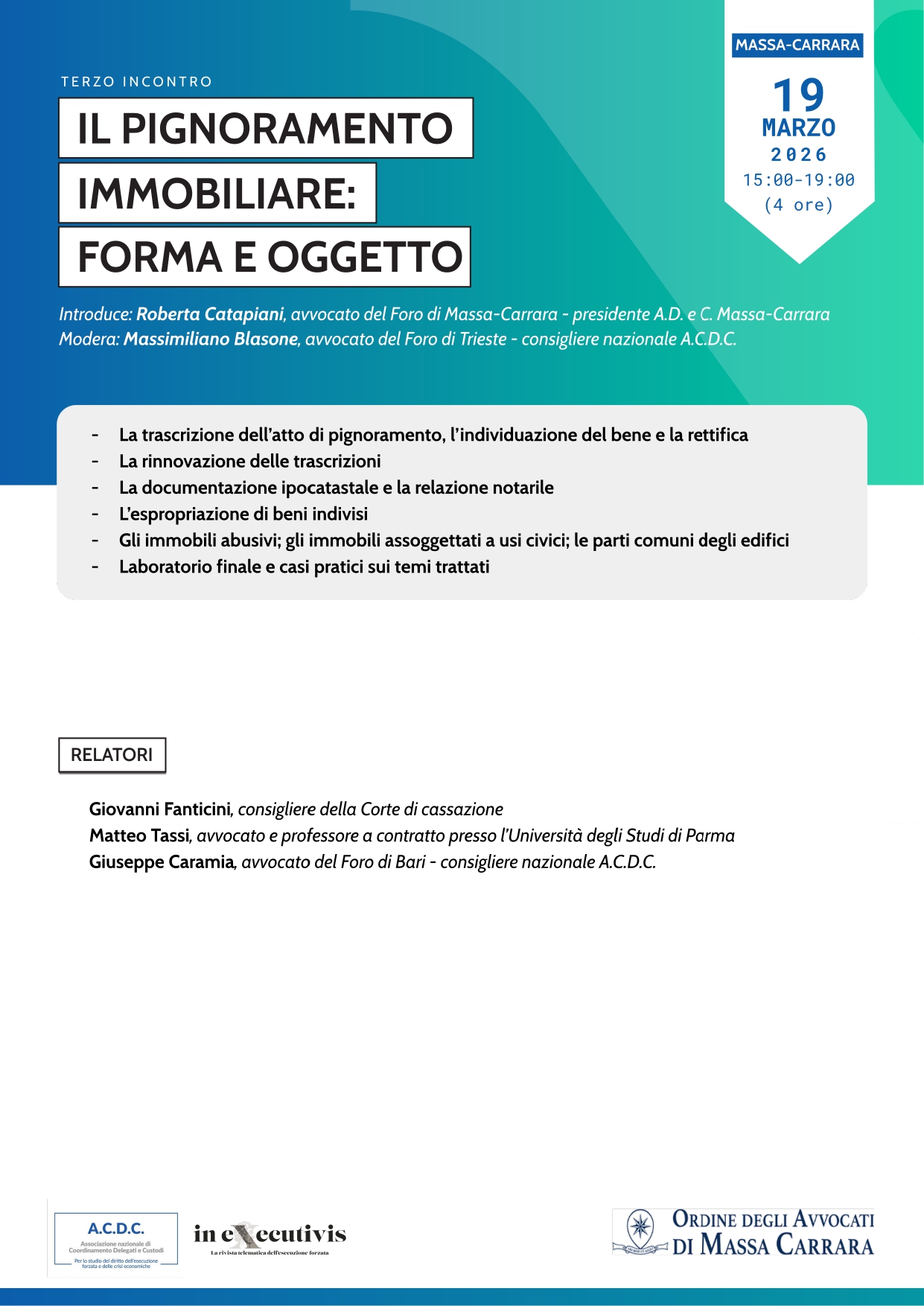 Massa Carrara – Corso di formazione ex art. 179 ter disp. att. c.p.c. – terza sessione