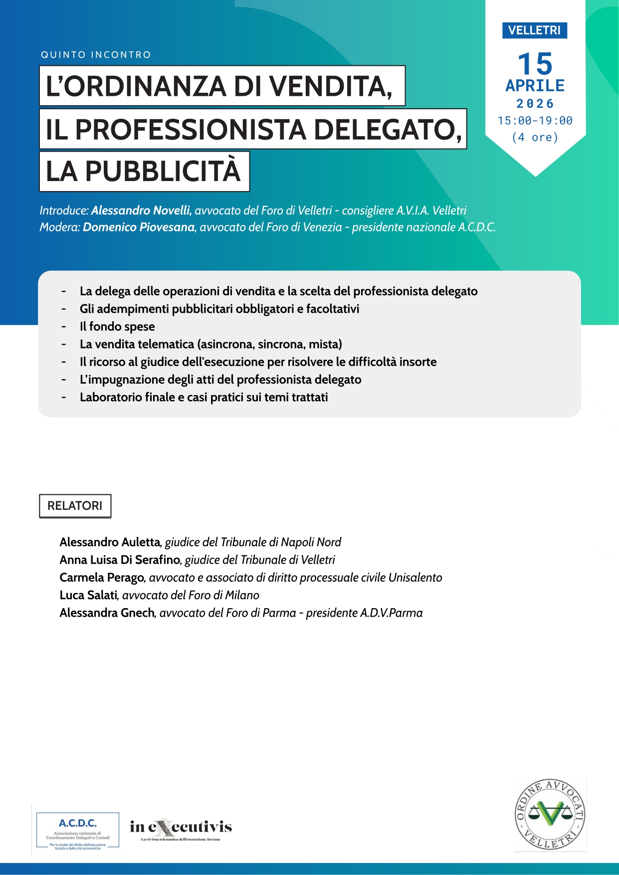Velletri – Corso di formazione ex art. 179 ter disp. att. c.p.c – quinta sessione
