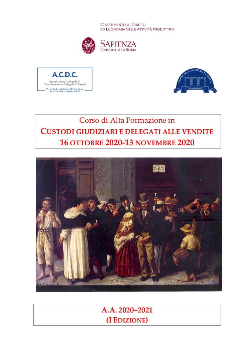 Corso di alta formazione in CUSTODI GIUDIZIARI E DELEGATI ALLE VENDITE